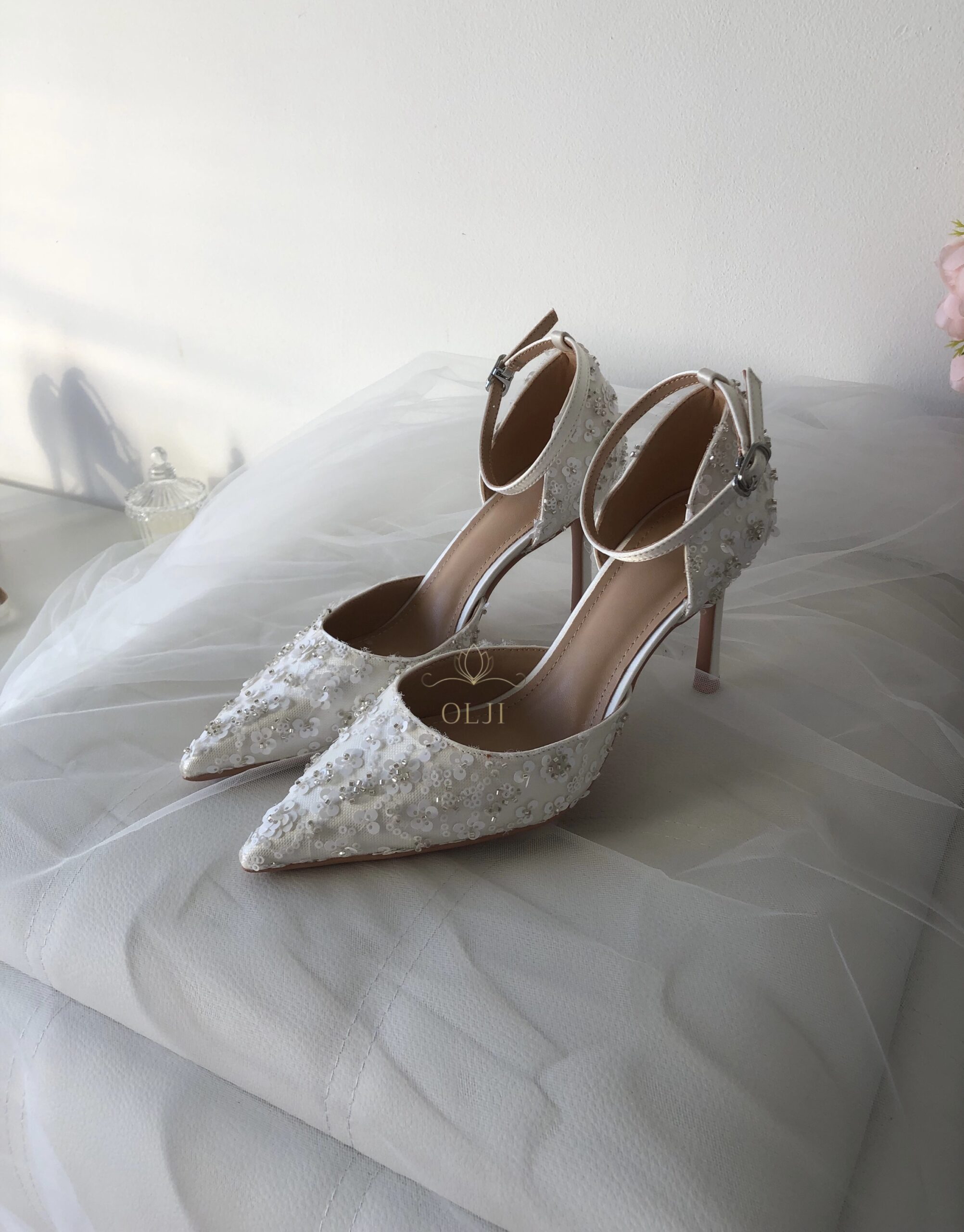 OLJI — це онлайн-магазин, де ви можете обрати жіночі весільні туфлі та аксесуари, які ідеально доповнять образ нареченої. У нашій колекції представлені витончені моделі взуття для весілля, стильні сумочки, прикраси та інші деталі, що допомагають створити гармонійний і завершений весільний образ.