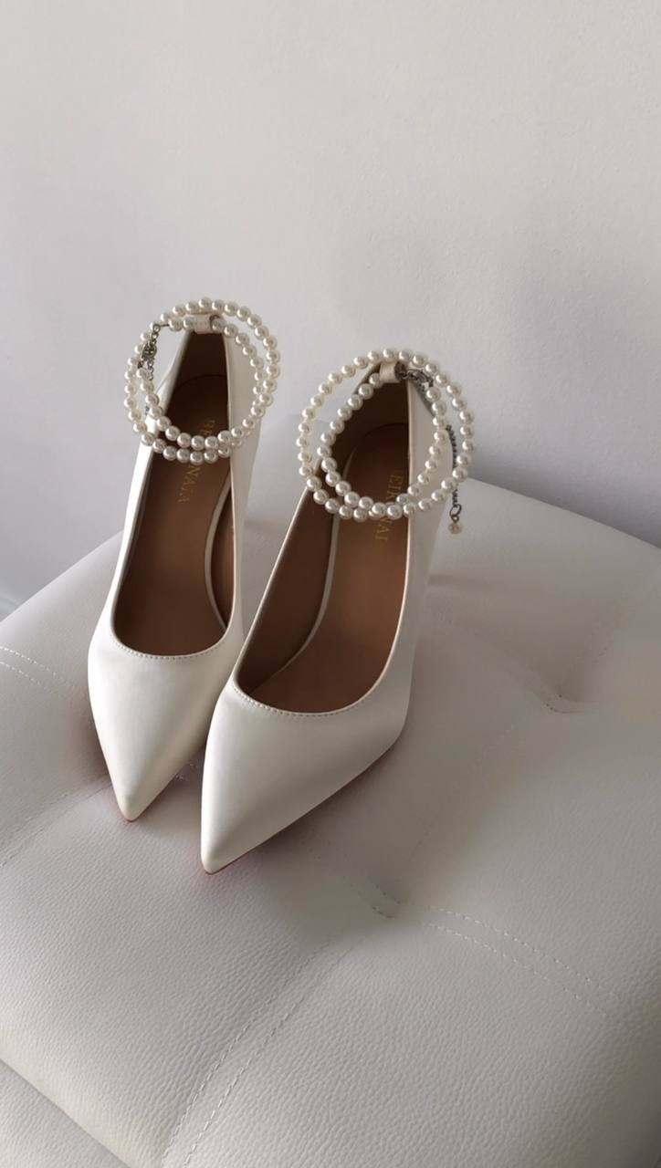Елегантні закриті атласні туфлі з перлами — вишуканий вибір для весільного образу та урочистих подій. Ніжний блиск атласу та перлини додають розкоші кожному кроку.